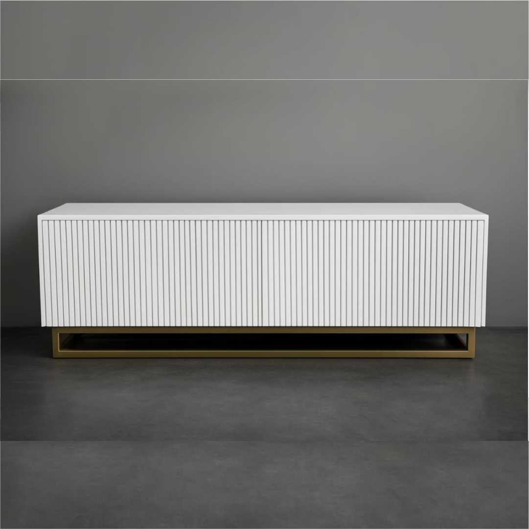 The Linear White Sideboard combines clean geometry with understated luxury. Featuring a seamless fluted façade and a sleek matte white finish, this piece introduces texture and depth without overpowering the room. Resting on a contrasting brushed gold base, it strikes the perfect balance between simplicity and elegance.